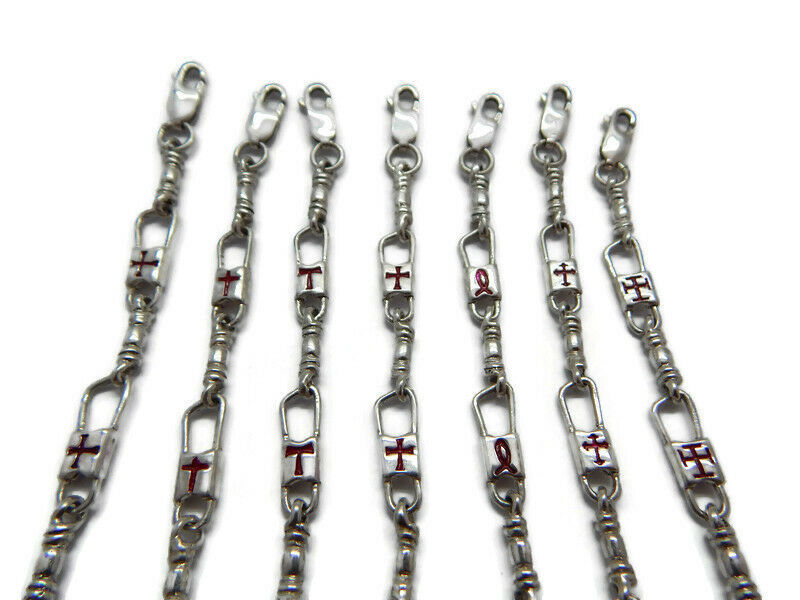 Hand crafted, ACTS Bracelet Fishers of Men Sterling Silver Byzantine Red Cross Design, 7, 8 and 9 inches. We have been in the jewelry business for over 30 years. We do custom work to our client?s request. This exquisite bracelet is manufactured by us here in the USA with excellent standard of quality. 100% satisfaction guaranteed or your money back. If you have any questions feel free to contact us.