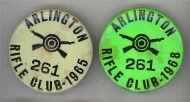 2 Arlington MA rifle clb shooting pins vintage 1965 68 gun sporting collectible