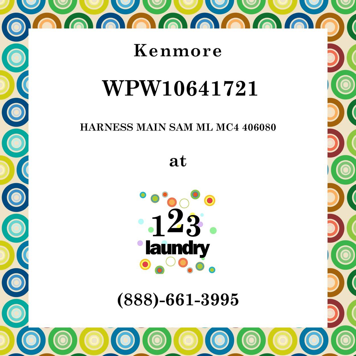 123 Laundry Solutions carries commercial laundry parts for all major brands. We offer commercial washer parts and commercial dryer parts at discounted prices. Purchase this Kenmore-WPW10641721-HARNESS MAIN SAM ML MC4 406080 to repair your commercial laundry equipment and save money today.