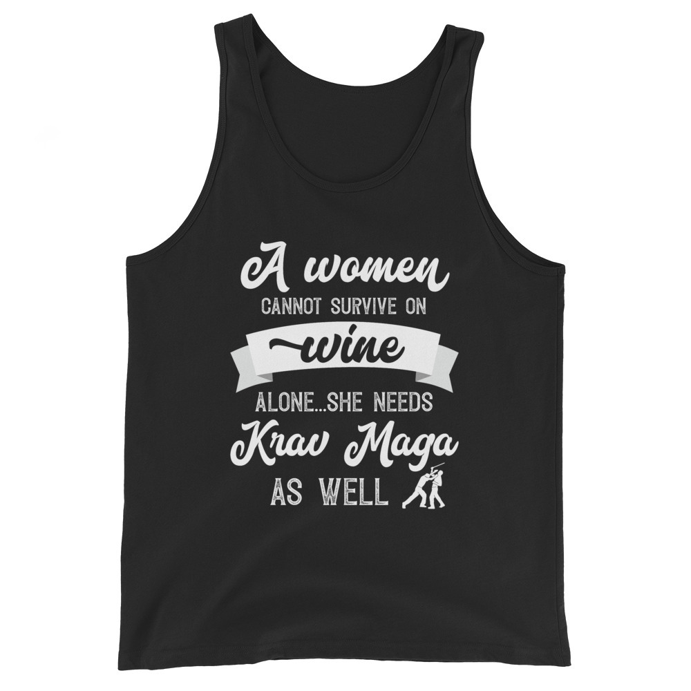 A Woman Cannot Survive On Wine Alone She Needs Krav Maga As Well Unisex Tank Top