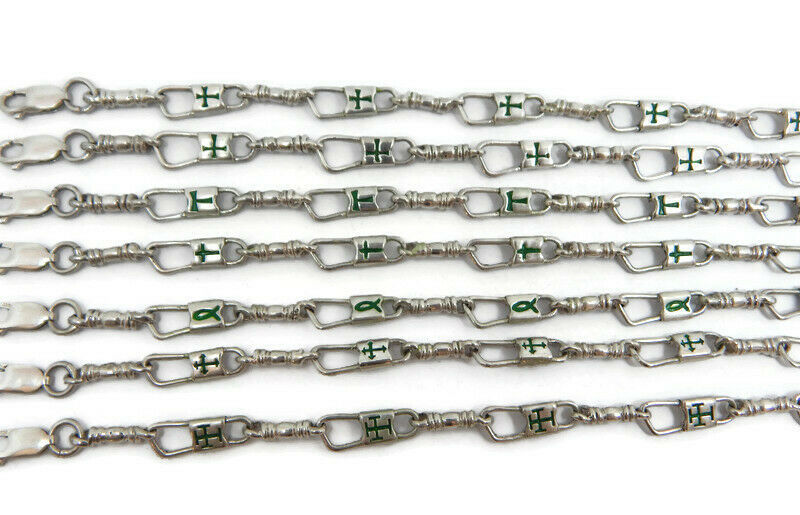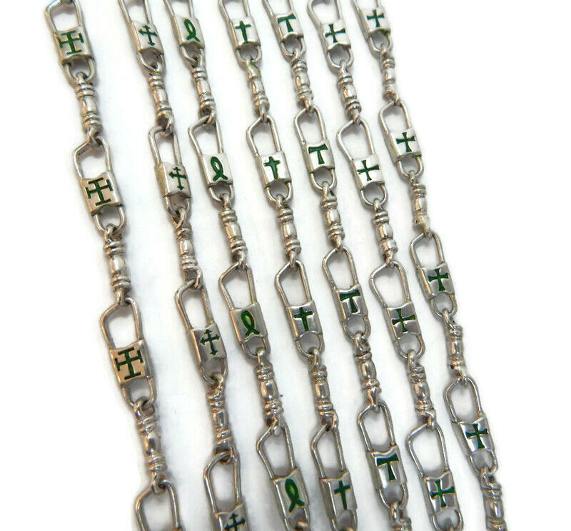 Hand crafted, ACTS Bracelet Fishers of Men Sterling Silver Byzantine Cross Green Design, 7, 8 and 9 inches. We have been in the jewelry business for over 30 years. We do custom work to our client?s request. This exquisite bracelet is manufactured by us here in the USA with excellent standard of quality. 100% satisfaction guaranteed or your money back. If you have any questions feel free to contact us.