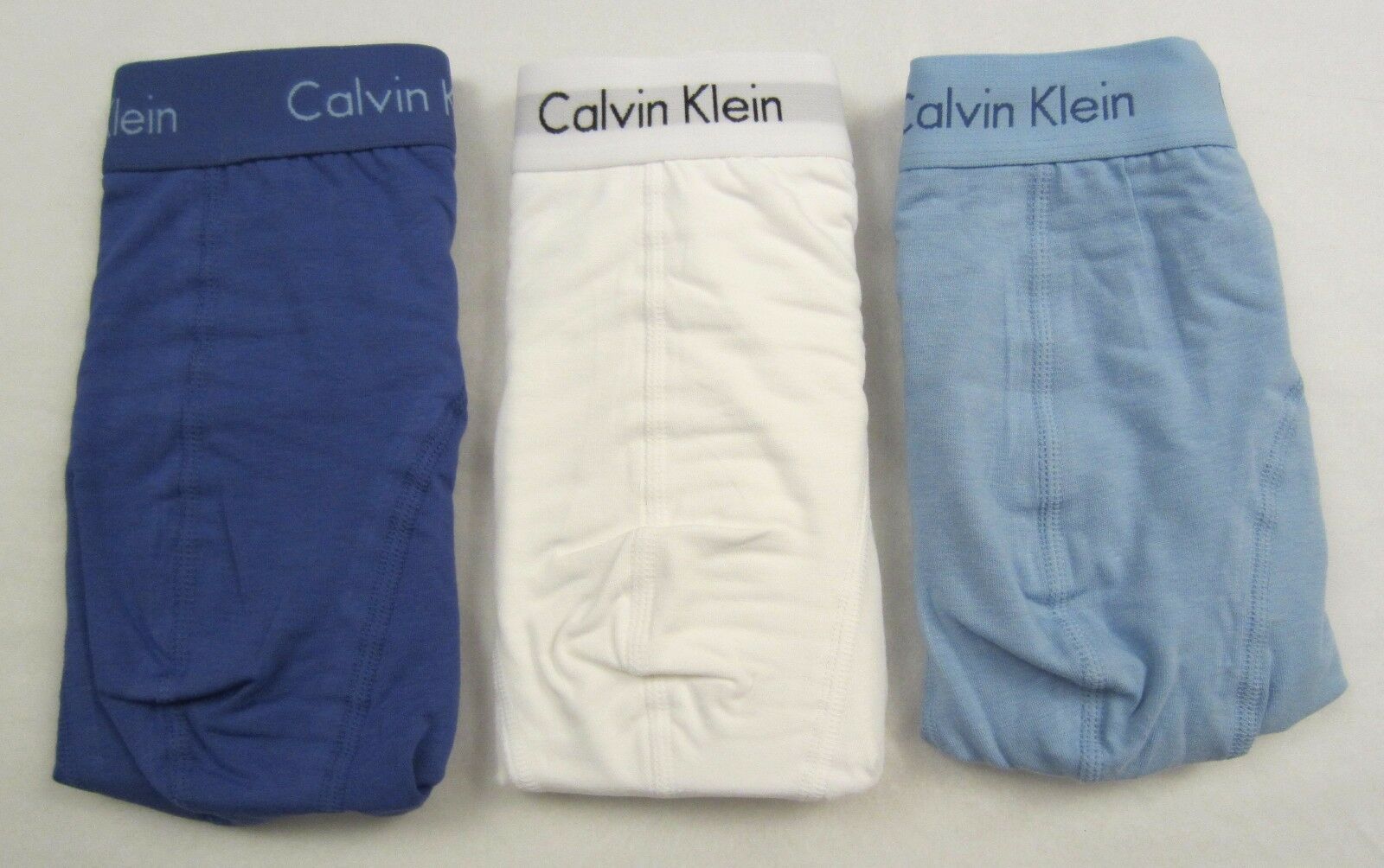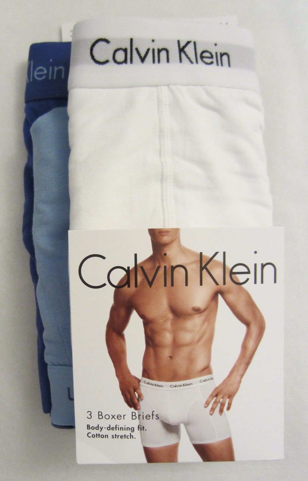 3 CALVIN KLEIN MENS 95% COTTON STRETCH WHITE BLUE BOXER BRIEFS SIZES: S M L XL