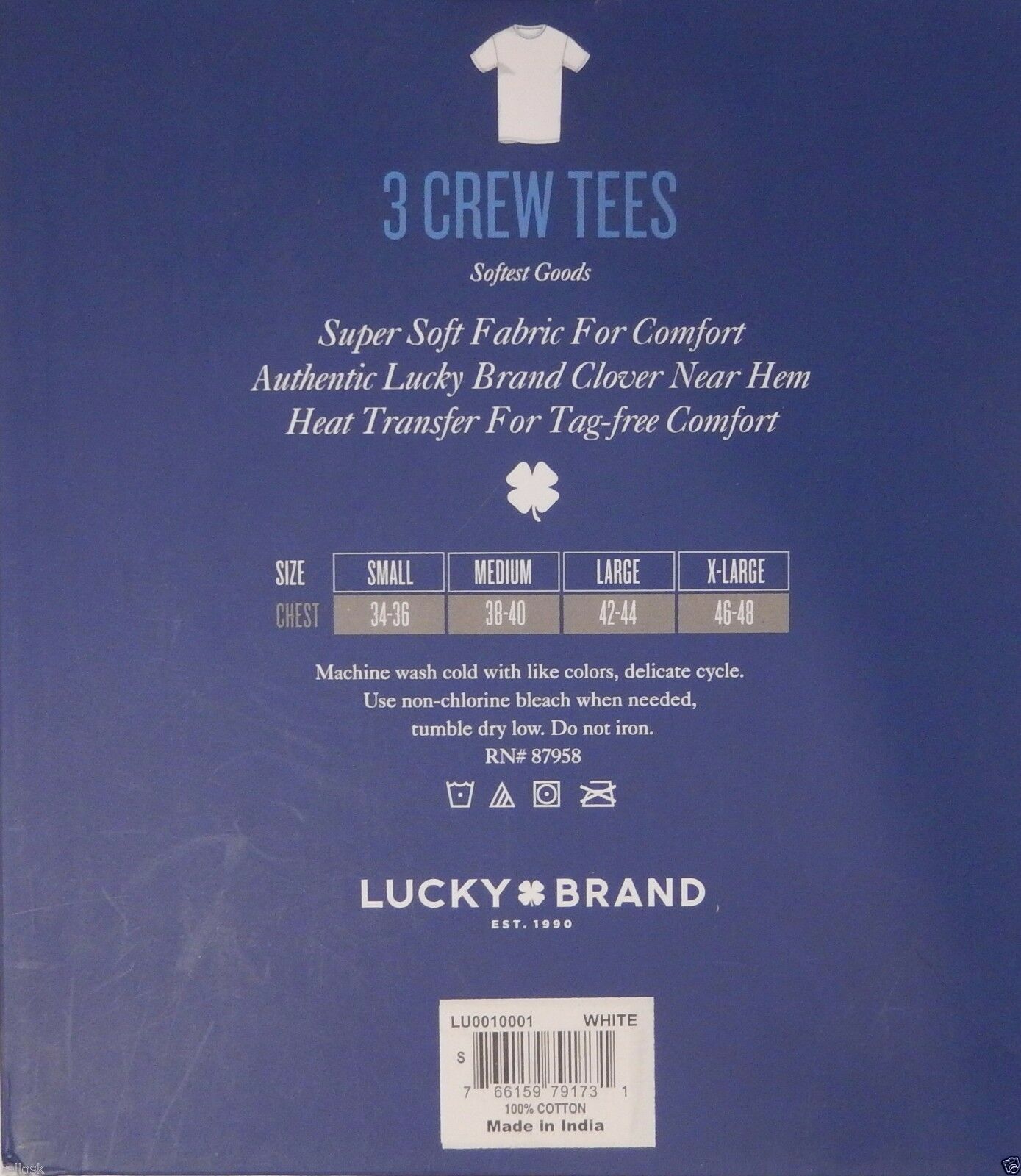 3 PACK LUCKY BRAND SIZES S M L XL MENS COTTON WHITE CREW-NECK T-SHIRT UNDERSHIRT