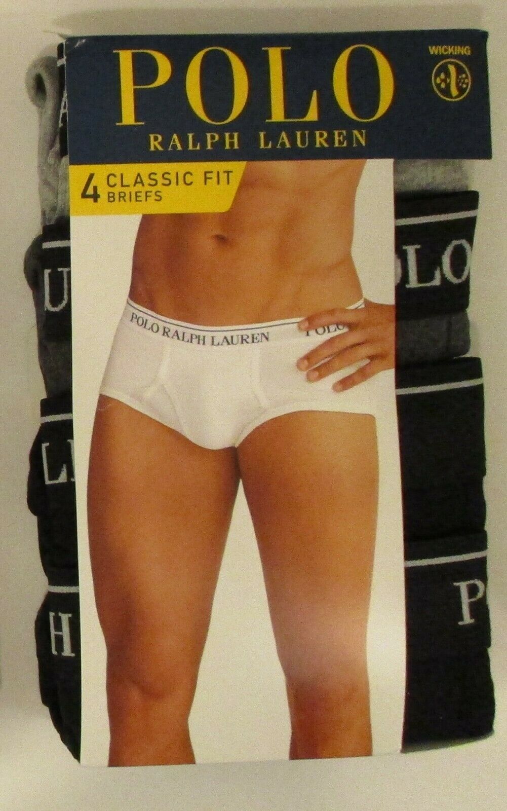 4 RALPH LAUREN POLO COTTON CLASSICS BRIEFS SIZES S M L XL 2XL BLACK WHITE GRAY