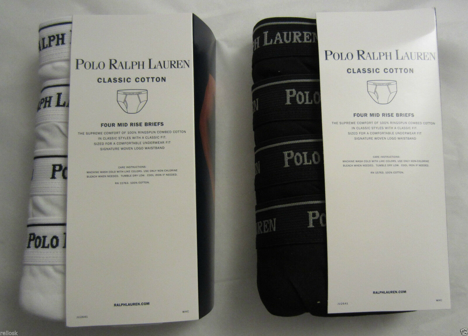 New 4-Pack of Authentic Polo Ralph Lauren Classic Men's Briefs Each pack contains 4 briefs. 100% ringspun combed cotton. Signature logo waistband. Functional fly. Classic fit. Choice of size: S M L XL 2XL. Choice of color: 4 Black 4 White 1 Light Gray / 1 Dark Gray / 2 Black 1 Light Blue / 1 Dark Blue / 2 Navy Blue Imported. Size Chart Waist Size S M L XL Inches 28-30 32-34 36-38 40-42 CM 71-76 81-86 91-97 102-107