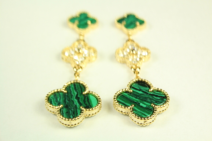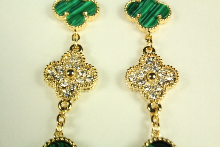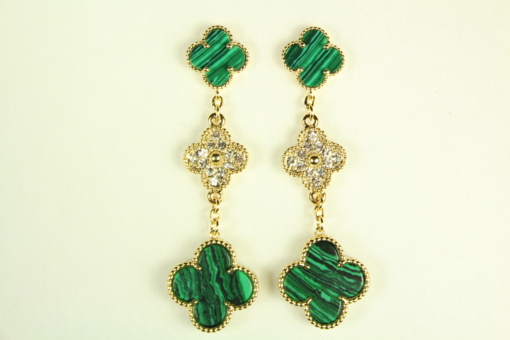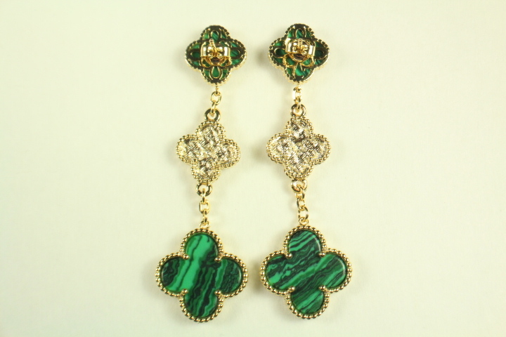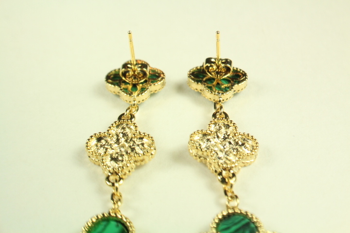 Triple Hanging Gold Plated Malachite Motif Earrings