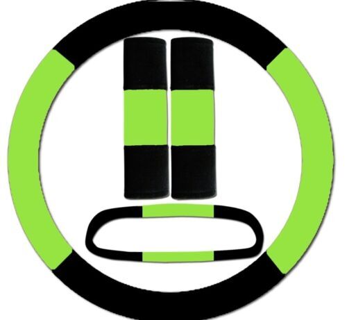 Steering wheel cover, seat belt covers & rear view mirror cover black-lime green