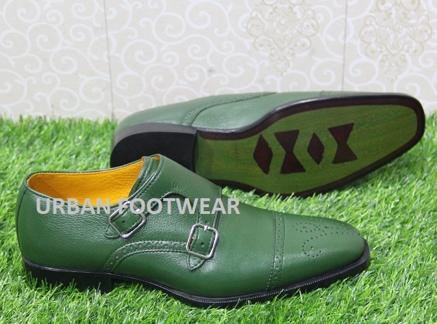 Mens New Handmade Formal Shoes Green Leather Double Monk Dress & Casual Wear
