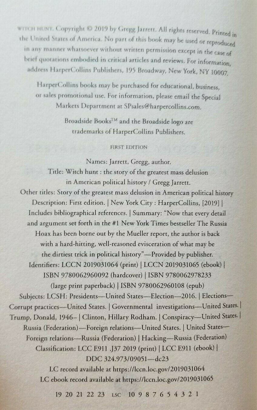Witch Hunt (2019 HC/DJ/1st Ed) Gregg Jarrett and 50 similar items