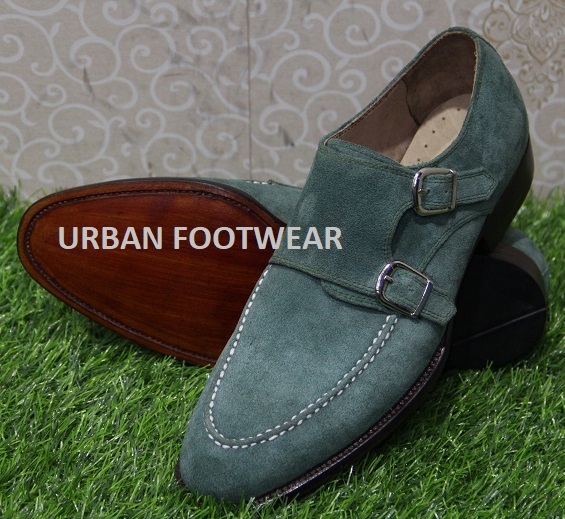 New Mens Handmade Formal Shoes Green Suede Double Monk Dress & Casual Wear
