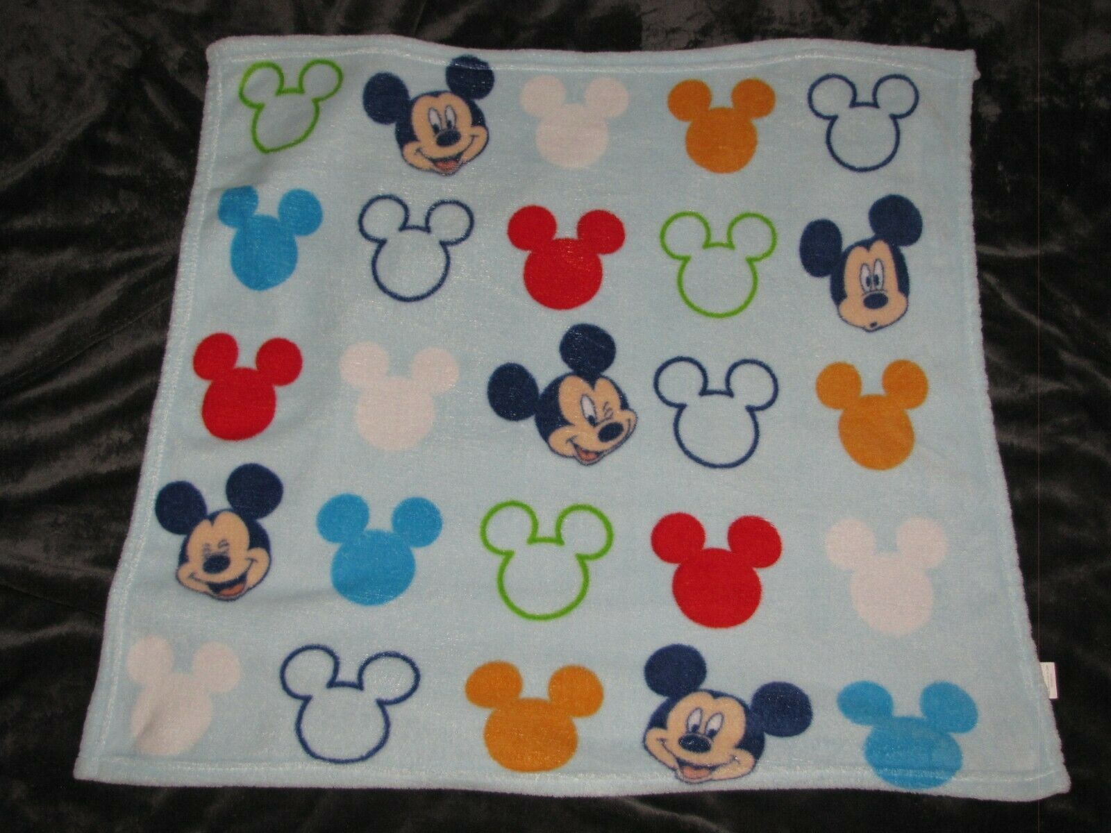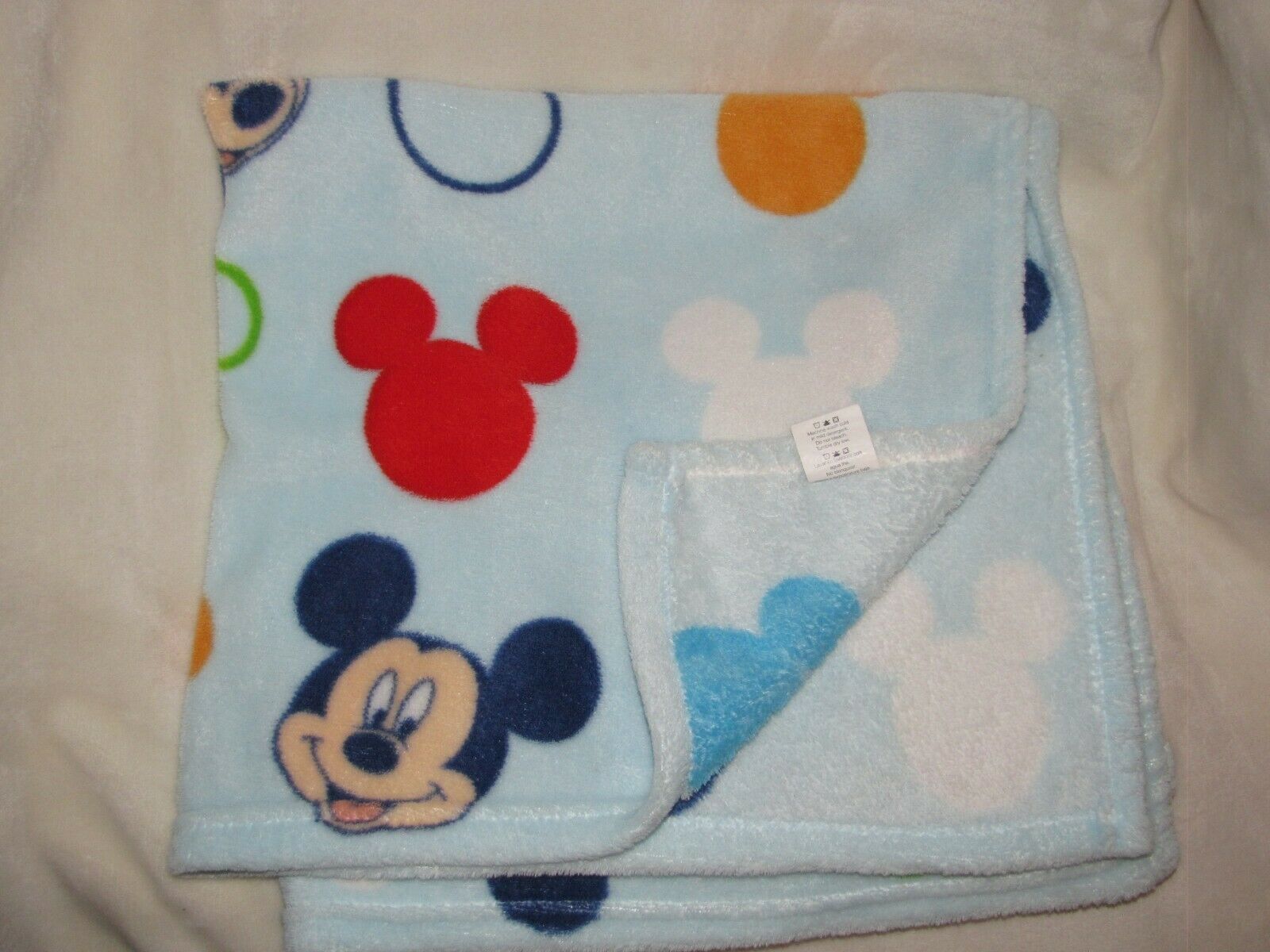 Disney Plush Fleece Mickey Mouse Face Silhouette Shape Baby Blanket Blue Orange