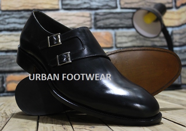 Mens Handmade Formal Shoes Black Leather Oxford Double Monk Dress & Casual