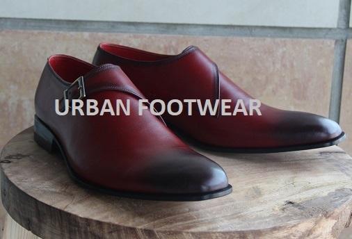 Mens New Handmade Formal Burgundy Black Leather Double Shaded Single Monk Dress
