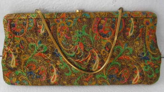 1950's Vintage Andrew Geller Handmade Designed Metallic Multi-Colored Brocade Material Ladies Clutch Purse.
