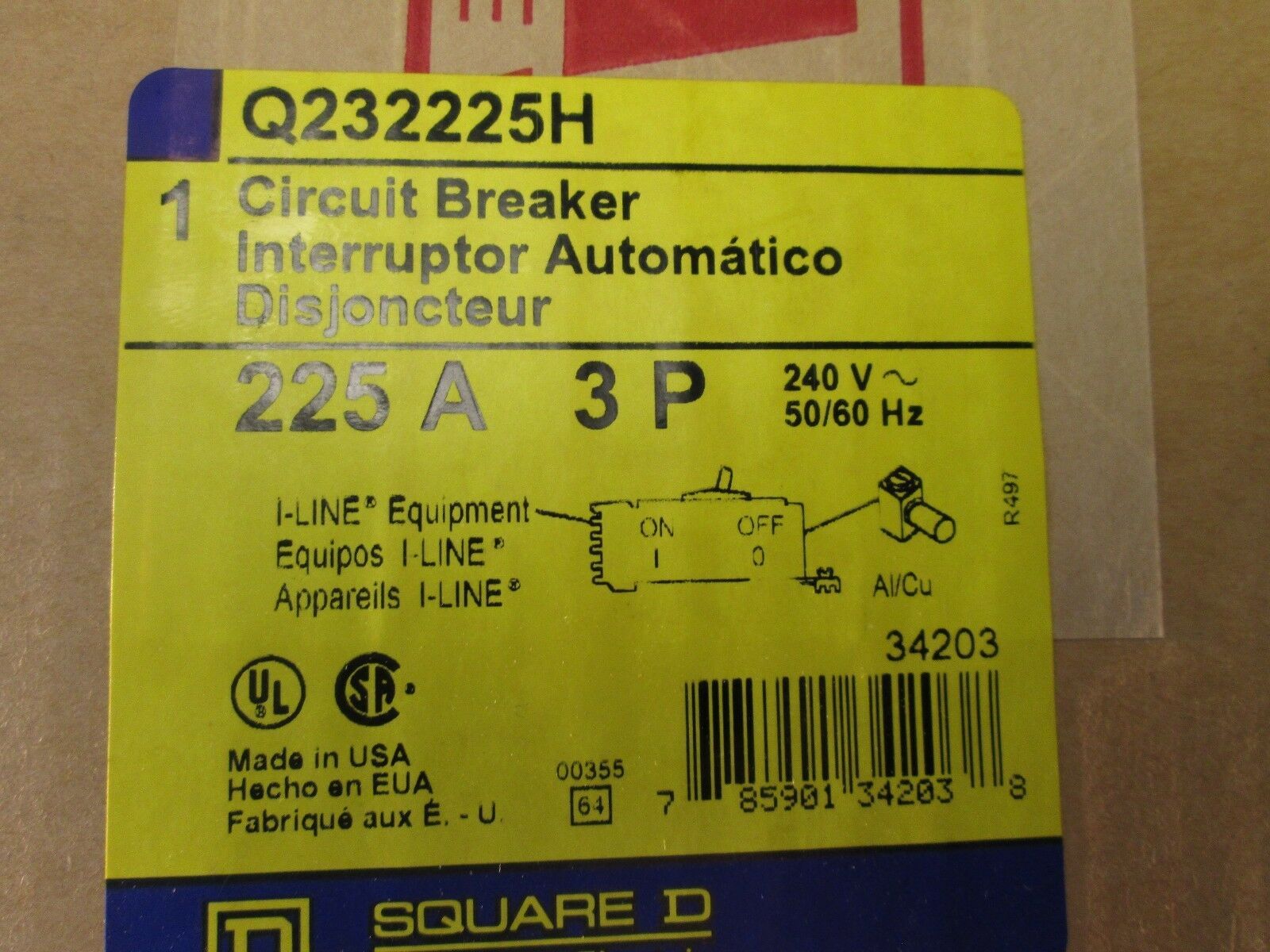 Square D I-Line Circuit Breaker Q232225H 240V 50/60Hz 225A 3P New Surplus