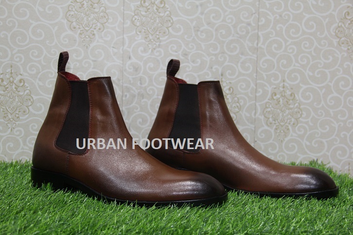 New Handmade Mens Formal Brown black Double Shaded Chelsea Ankle High Dress