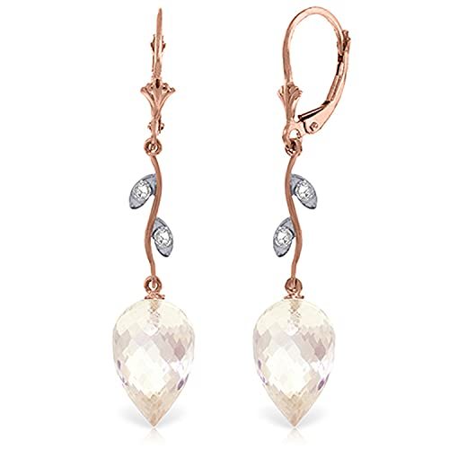 14K Solid Rose Gold Natural White Topaz Drop Earrings with Diamond Accents for W