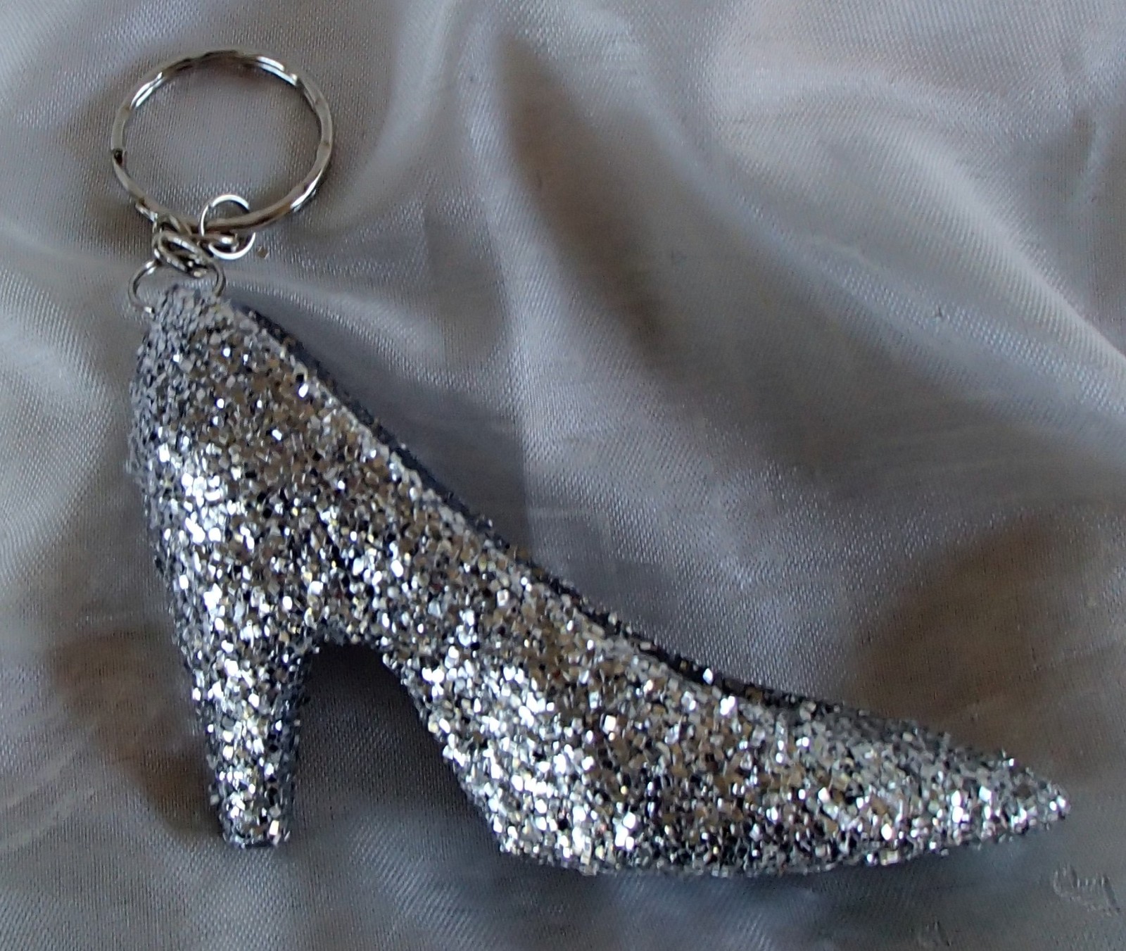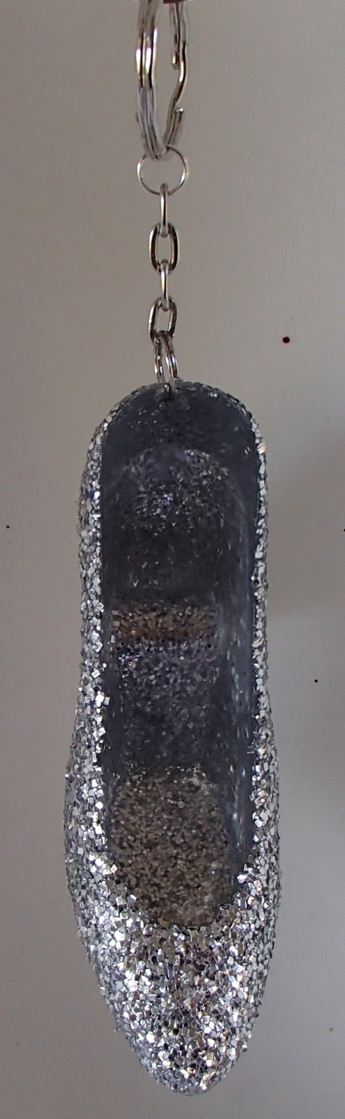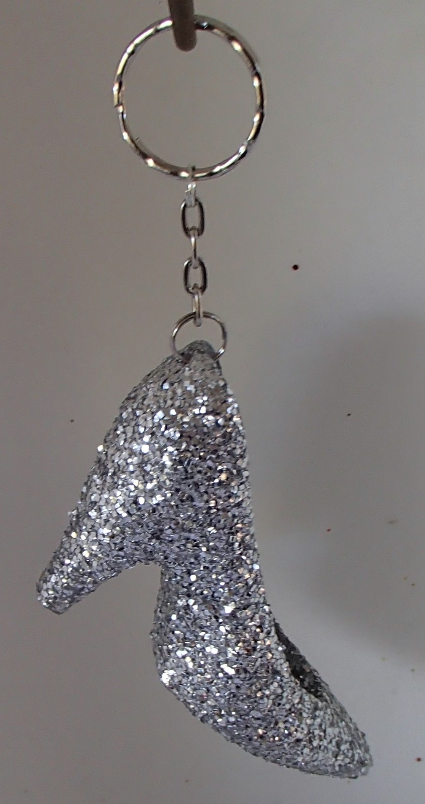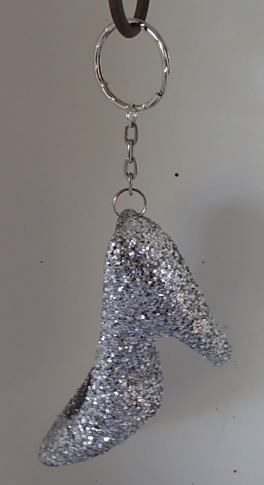 This is one of my newest creations.... a silver glitter slipper key chain (or key ring).