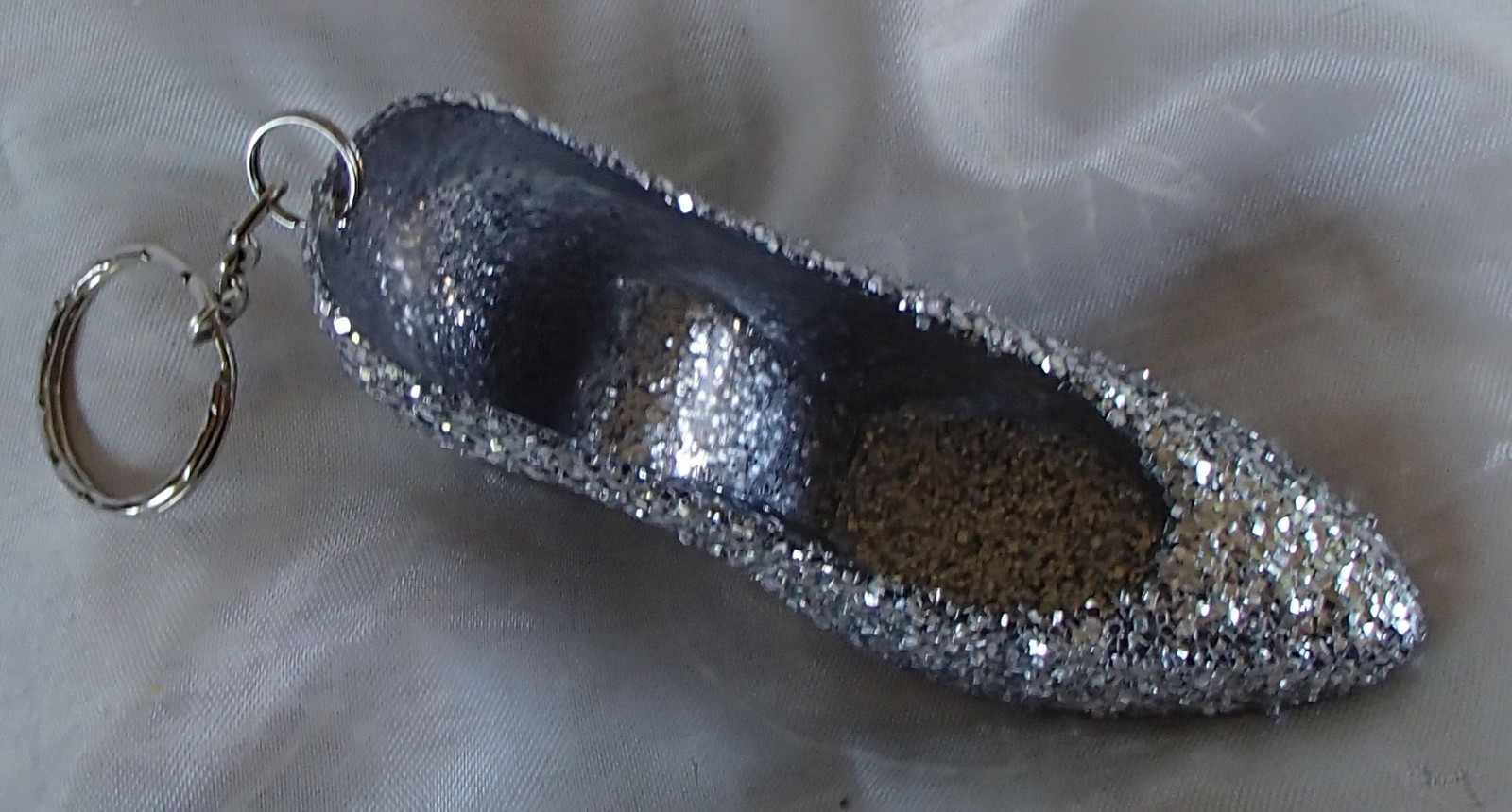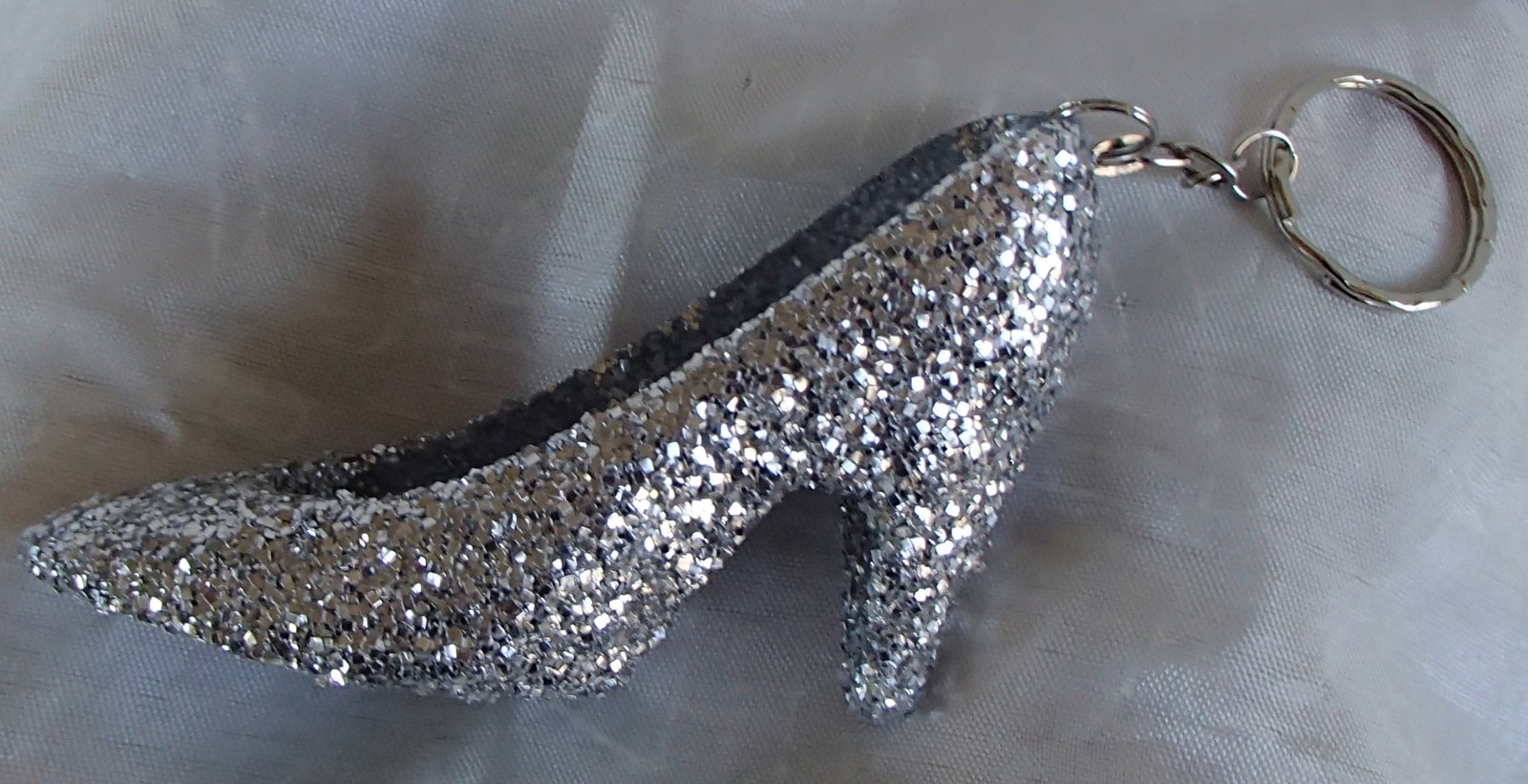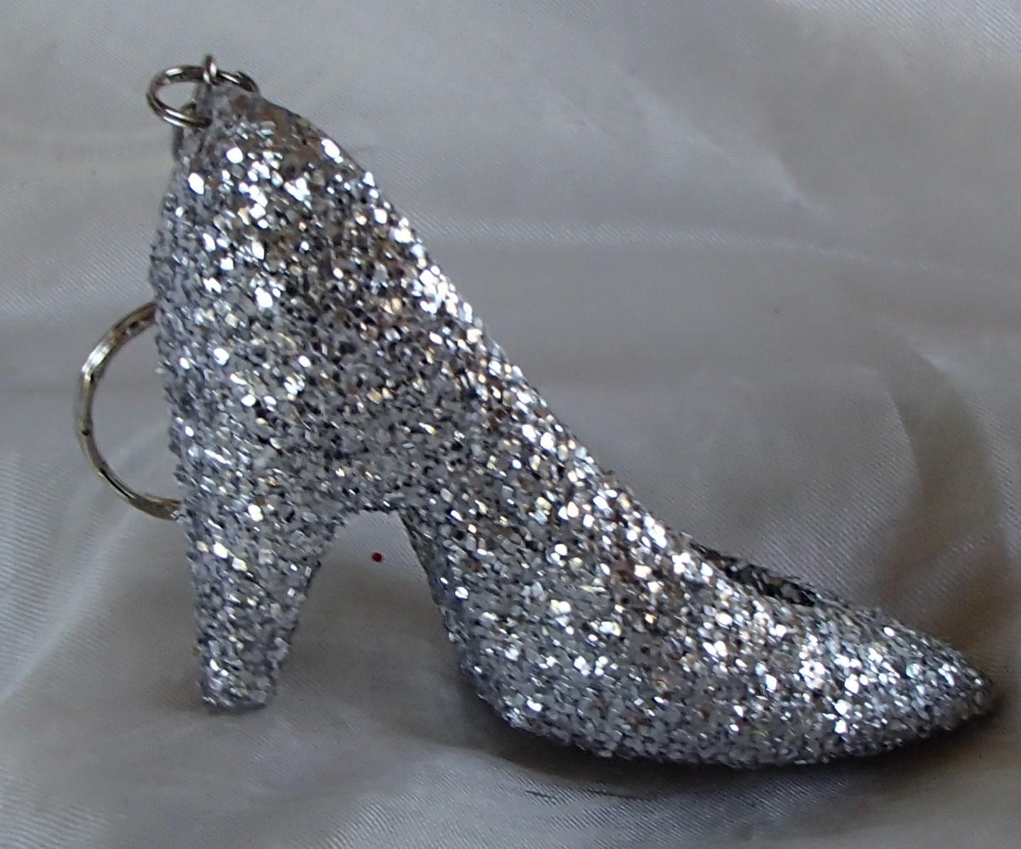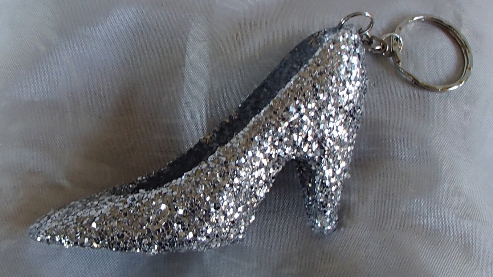 This is one of my newest creations.... a silver glitter slipper key chain (or key ring).