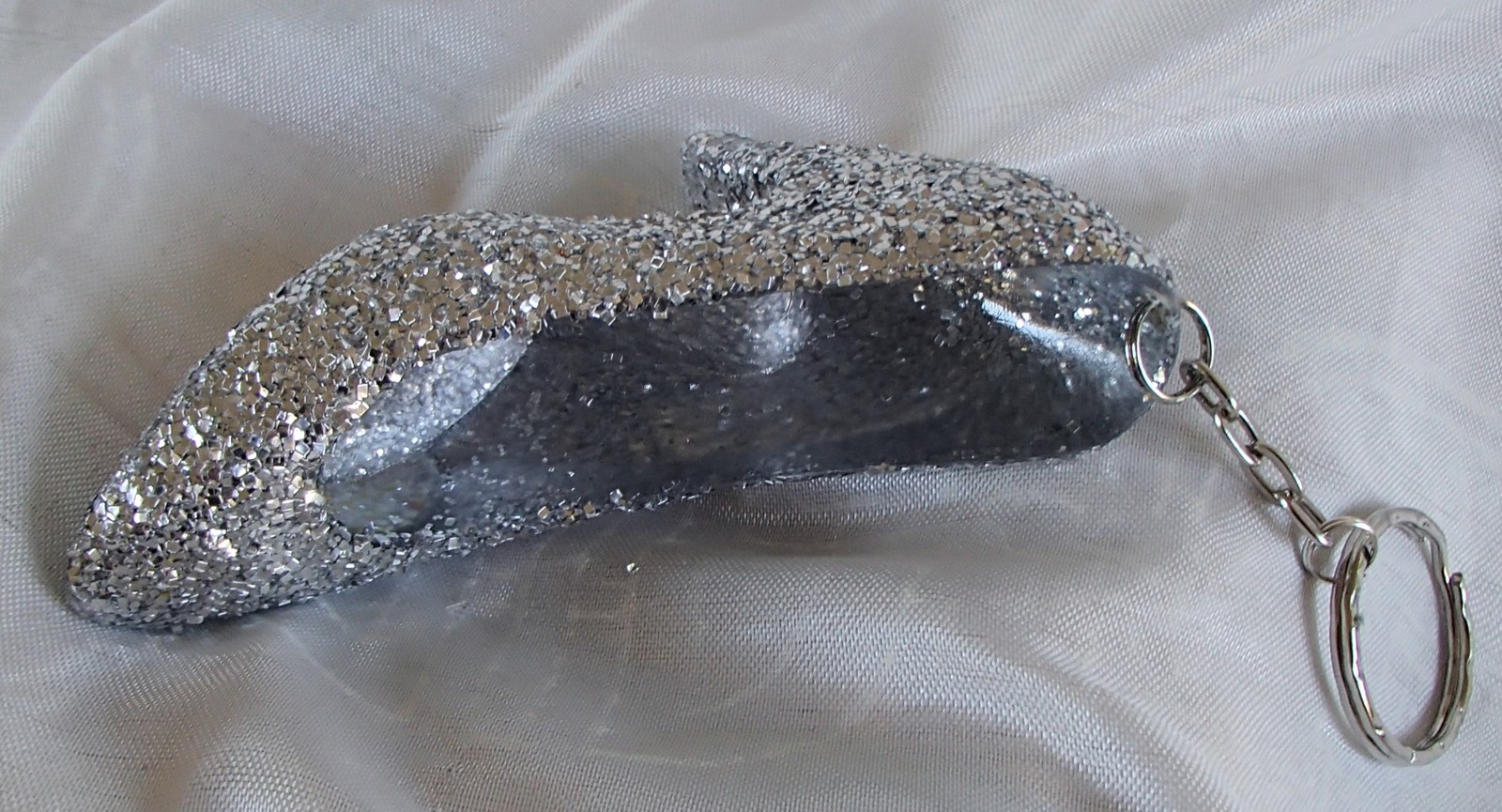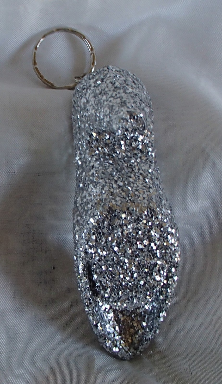 Silver Slipper Acrylic Glitter Key Chain Handcrafted Holiday Festive FREE SHIP