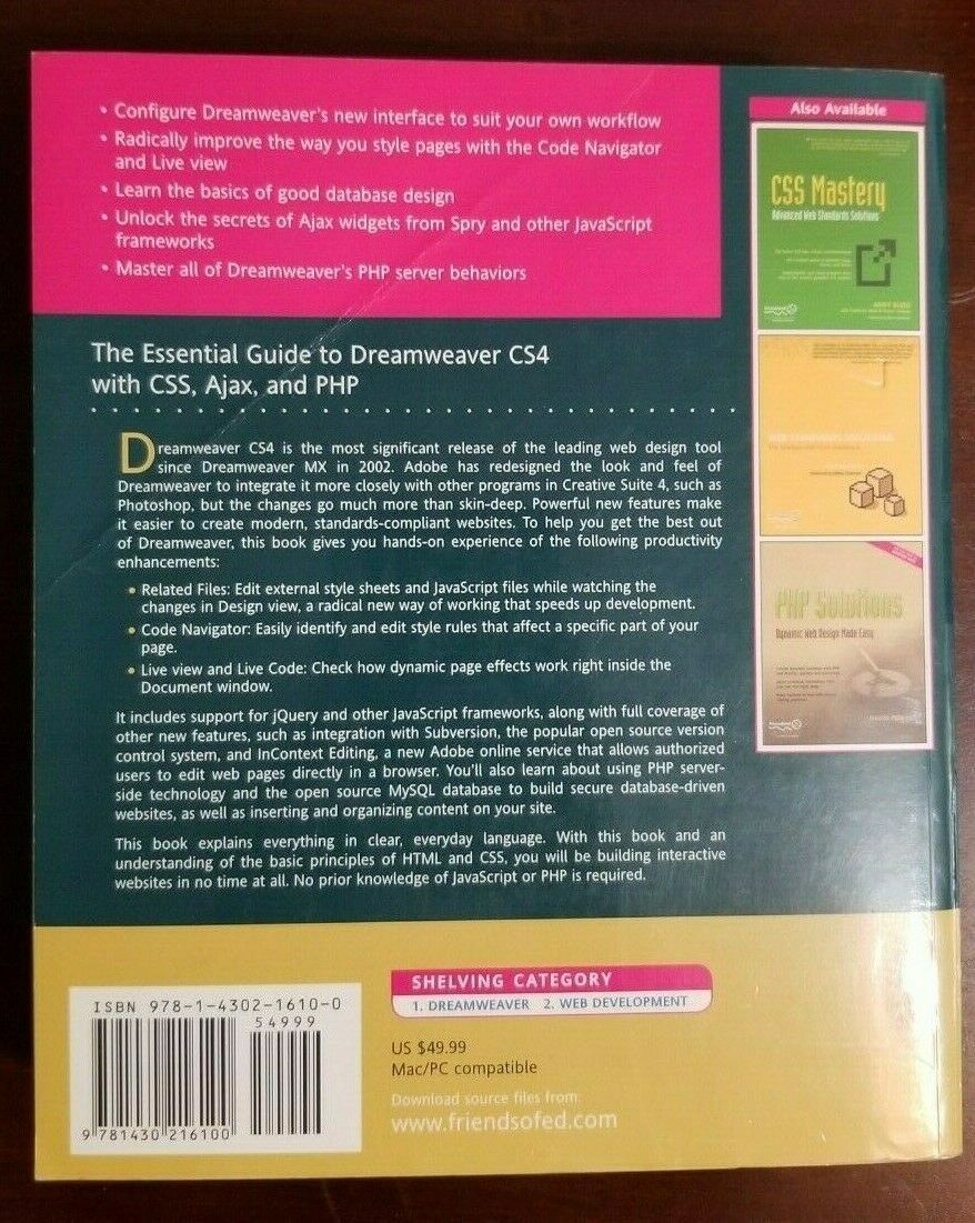 The Essential Guide to Dreamweaver CS4 with CSS, Ajax, and PHP by D. Powers NEW