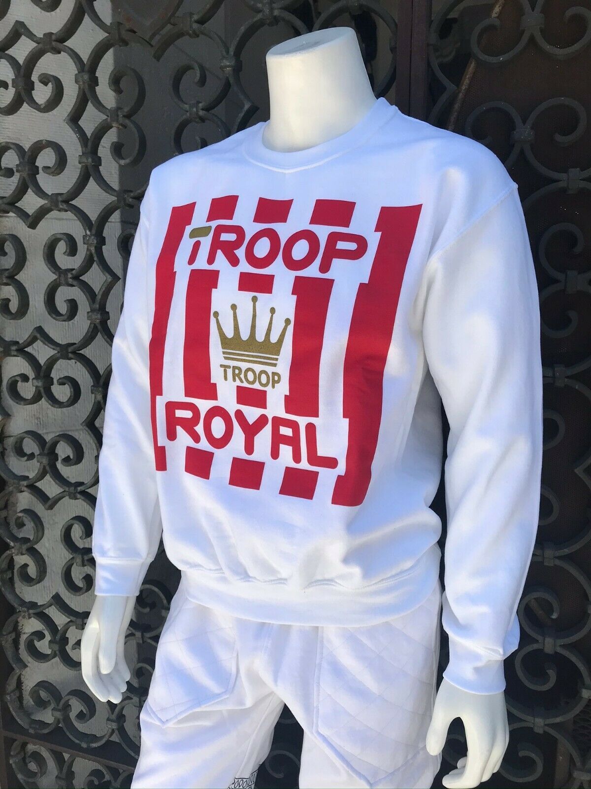 Keep warm and stylish in this classic red and white crewneck fleece from Troop Clothing. Soft yet durable, this crewneck was designed to give you maximum comfort while still looking fashionable.
