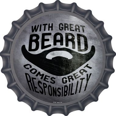 With Great Beard Novelty Metal Bottle Cap. Made of the highest quality aluminum for a weather resistant finish. It is lightweight durable. Pre-drilled holes for quick and easy mounting. Add a ribbon, wire or string to instantly personalize your sign. Individually shrink-wrapped and proudly made in the USA.