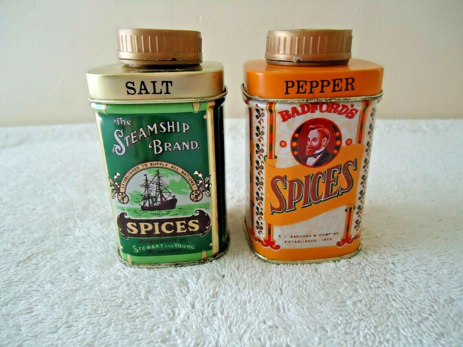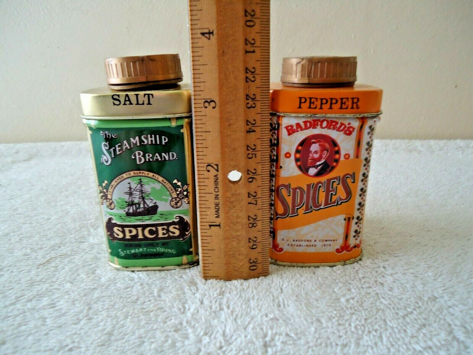 Here is a Vintage Made In Hong Kong Steamship / Bradfords Metal Salt Pepper Shaker Set " BEAUTIFUL COLLECTIBLE SET ".This is a must for any collector,or decorator wanting that vintage retro look.If you have any concerns or questions about this item(s) please ask before bidding / purchasing this item(s).Thank You.-(PC42)
