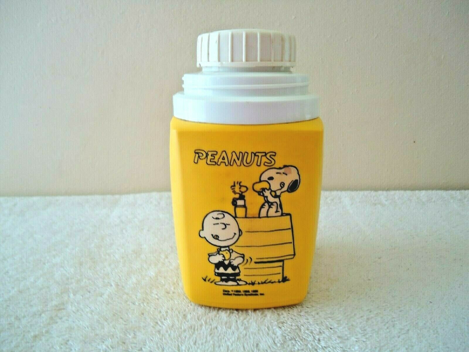 Vintage Peanuts Yellow Plastic Thermos Bottle " GREAT COLLECTIBLE ITEM "