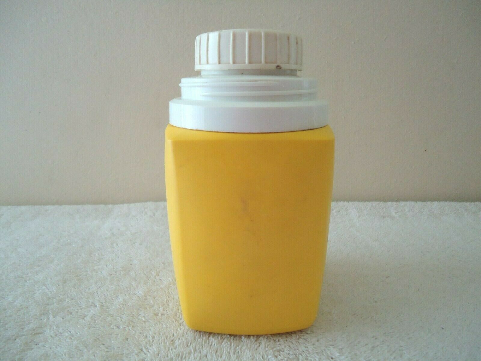 Here is a Vintage Peanuts Yellow Plastic Thermos Bottle " GREAT COLLECTIBLE ITEM ".This is a must for any collector who needs this thermos for their set,or decorator wanting that vintage retro look. If you have any concerns or questions about this item(s) please ask before bidding / purchasing because this item(s) is being SOLD AS IS.Thank You.-(S PTOP)