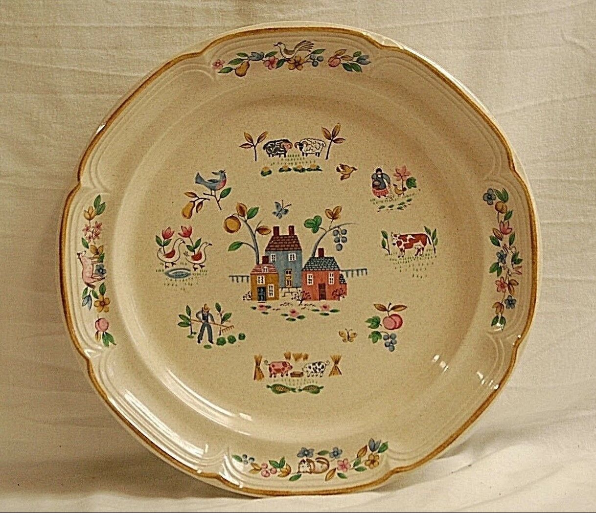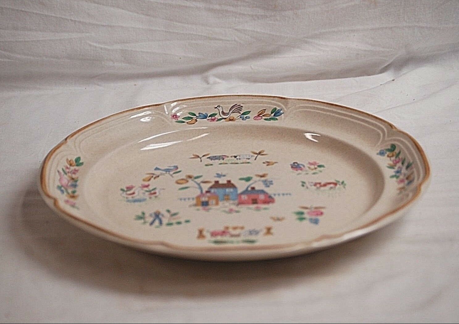 Heartland by International Stoneware Chop Plate Round Platter Farm Scene Japan