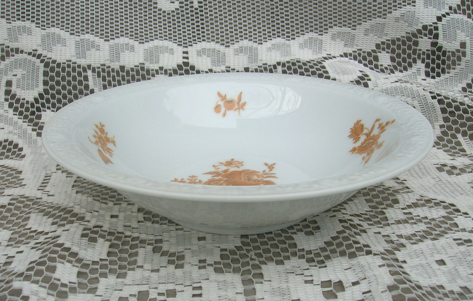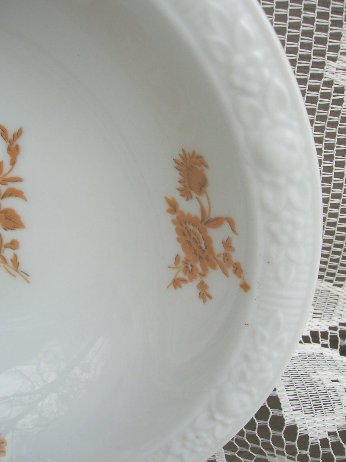 White with Gold Floral Bouquets Rim and Center |
