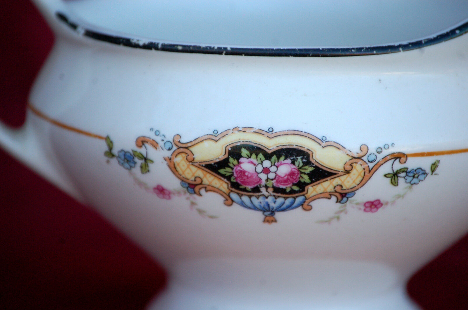 Old Vintage W.S. George Footed Creamer w Garland of Pink Roses Derwood-8 85531X