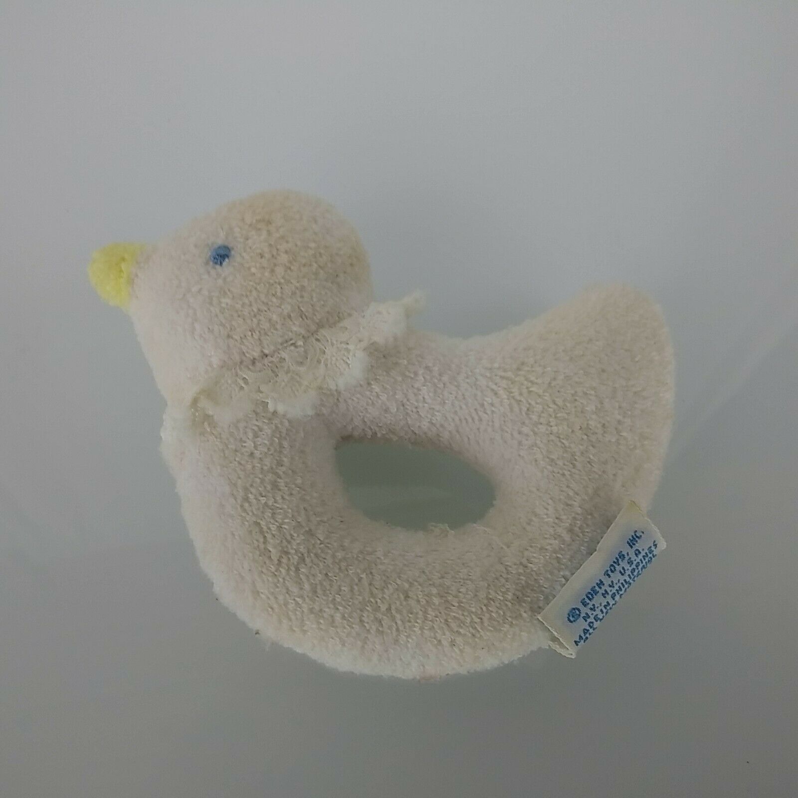 Vintage Eden Duck Terry Ring Rattle Baby Infant Soft Stuffed Plush Grasping Toy