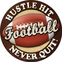 Football Novelty Metal Mini Circle Magnet CM-661. 3.5" x 3.5" high gloss metal mini circle with magnet on the back. Made of the highest quality aluminum for a weather resistant finish. It is lightweight durable. Proudly made in the USA.