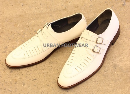 Men's New Handmade White Leather Stylish Double Monk Strap Dress & Occasion