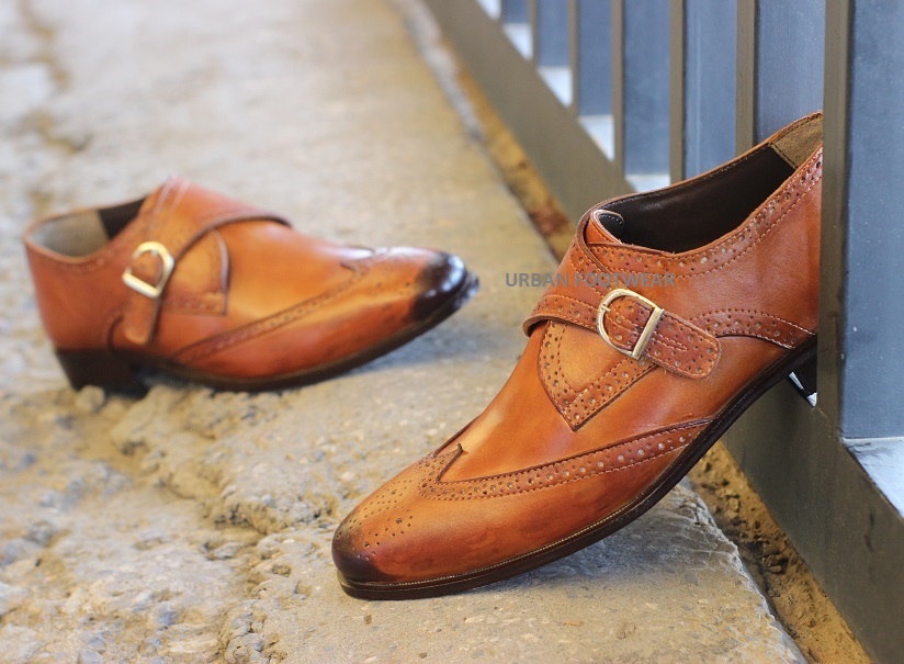 New Handmade Men's Two Tone Maroon & Black color Leather Double Monk Dress