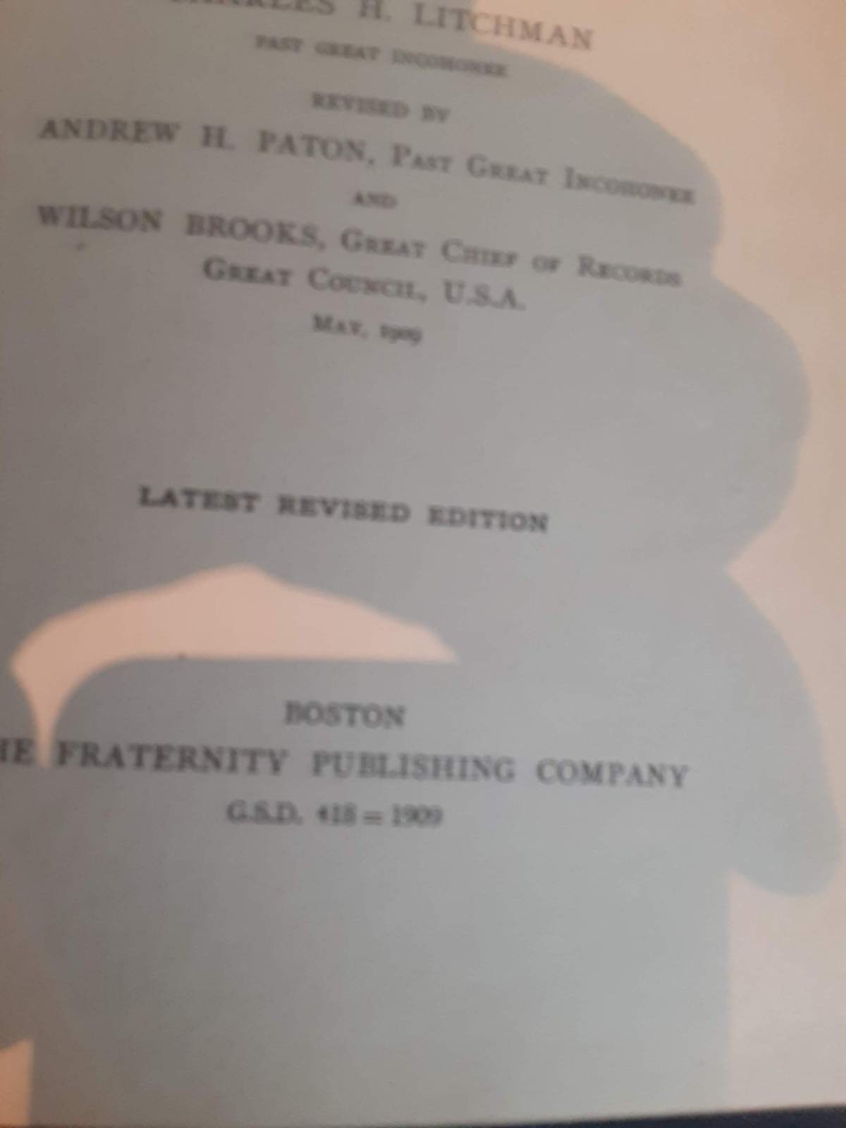 The Official History of the Improved Order of Redmen. Illustrated. This is the 1909 edition of this book published in Boston. There is some discoloration on the cover. All pages intact, none loose. When I looked it up , this book appears to be in better shape than most others with the same title.