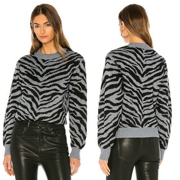 NWT REBECCA MINKOFF S Jax zebra Intarsia sweater soft warm luxury pullover $178