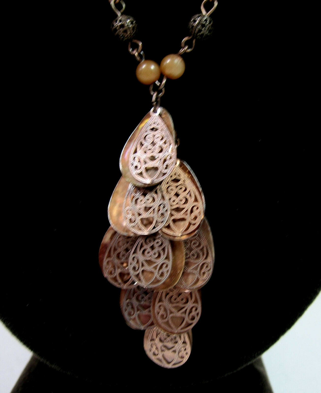 Copper Seashell TEARDROPS Double Dangle Pendant Necklace Vintage Beads 20"