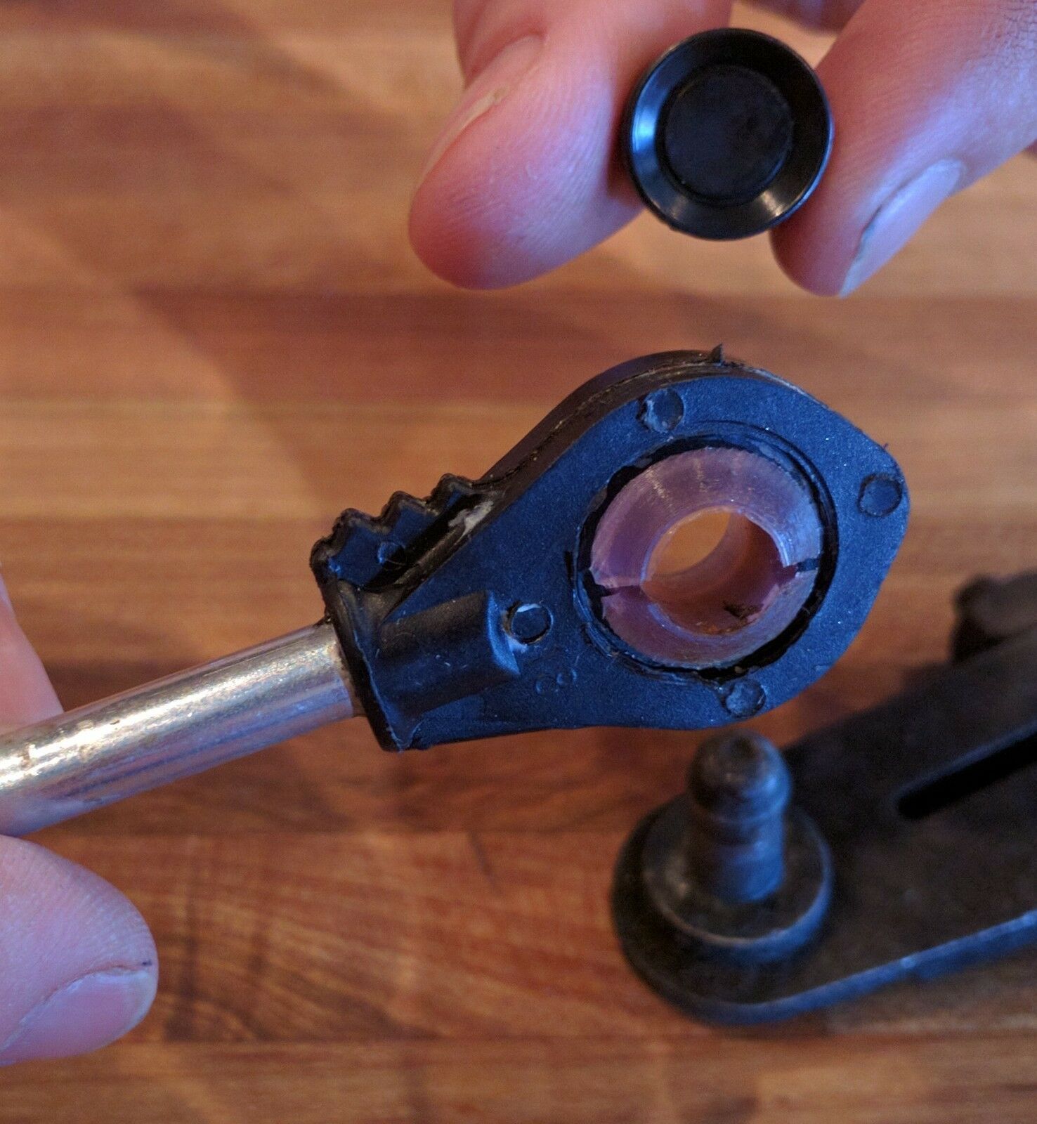 The kit replaces the bushing on the interior end of the cable located at the base of the gear shifter.