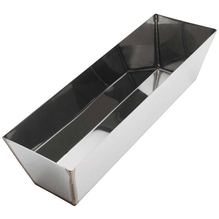 Advance's signature, and most popular mud pan. Smooth tapered ends and sides with squared corners. Heliarc weld prevents leaking. Top edge sheared to clean knife easily. Stainless Steel. Made in U.S.A.