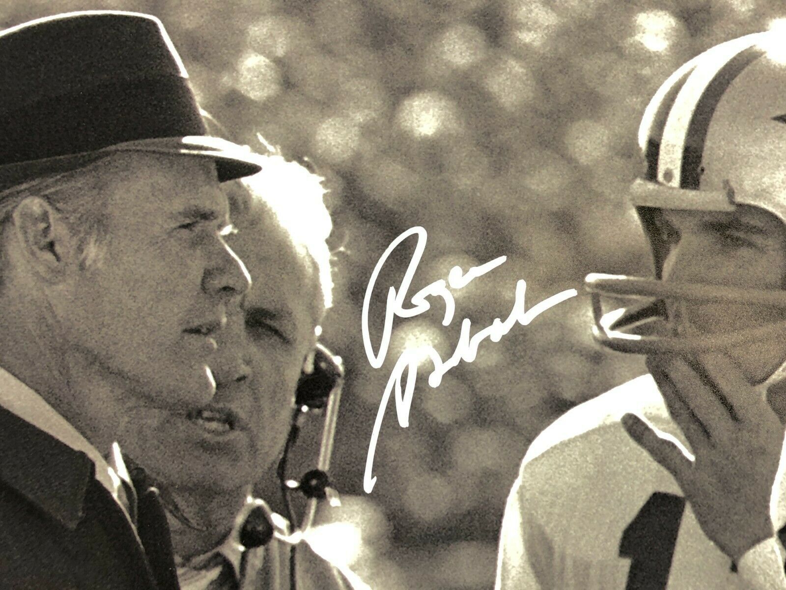 Dallas Cowboys fans, this is your calling. Check out this hand signed Roger Staubach 16x20 photo w/ Tom Landry pictured!! This is a great shot of the head coach and legendary QB from Super Bowl 6 in which also pictured is also Cowboys tight end Mike Ditka way before he was the head coach of the 1986 Chicago Bears! This is a must-have item for all Staubach and Cowboy fans' man caves, game rooms, offices and lady lairs!