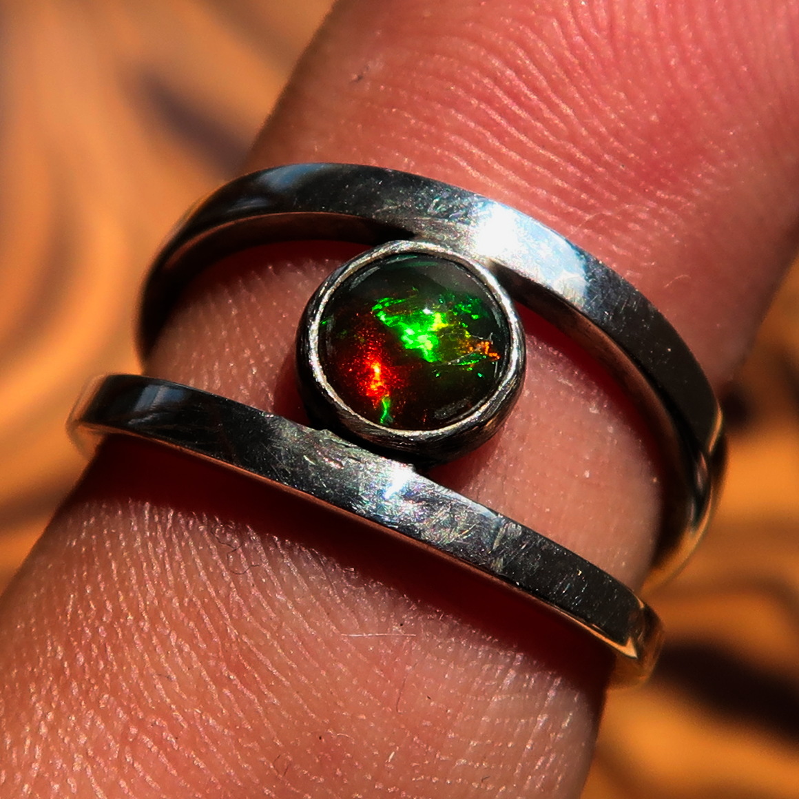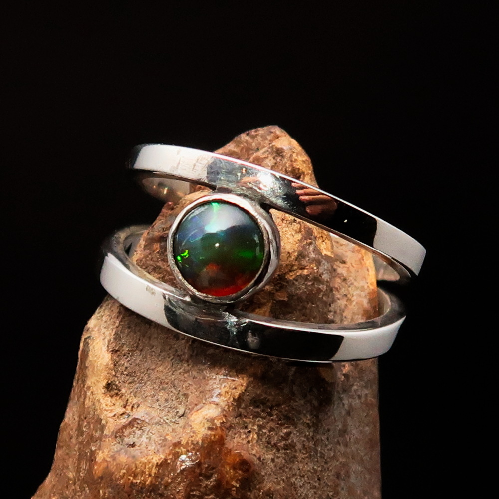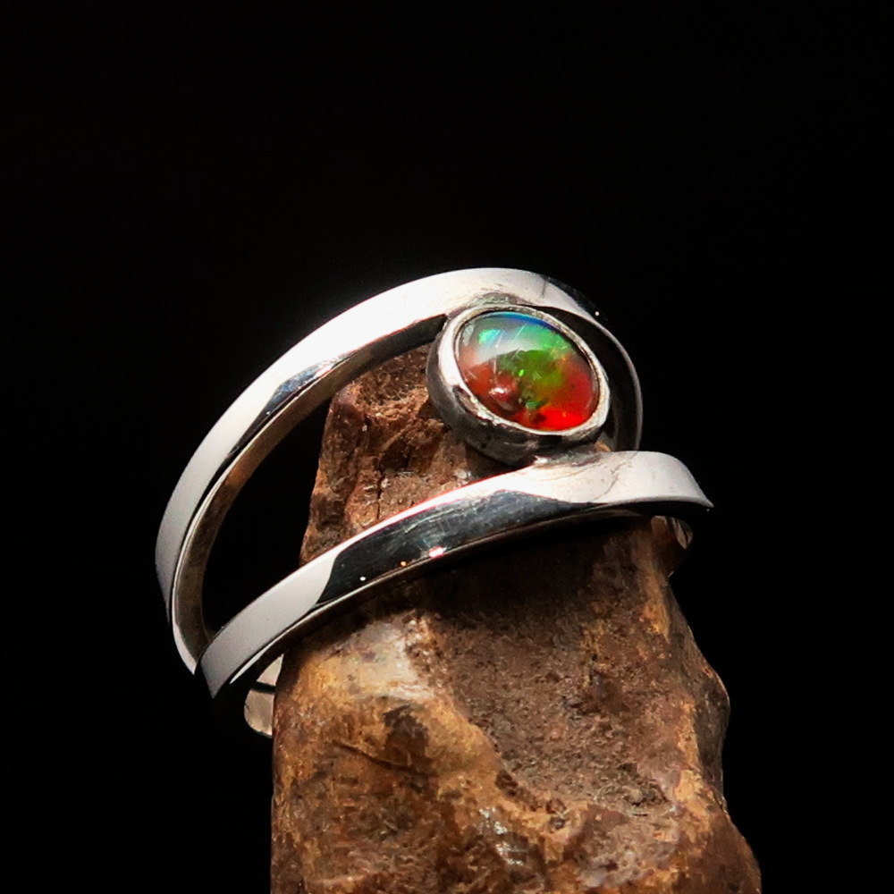 You are looking at an excellent crafted unique Sterling Silver (marked 925) Ring in great Quality. The Stone is a natural multi-color Opal.