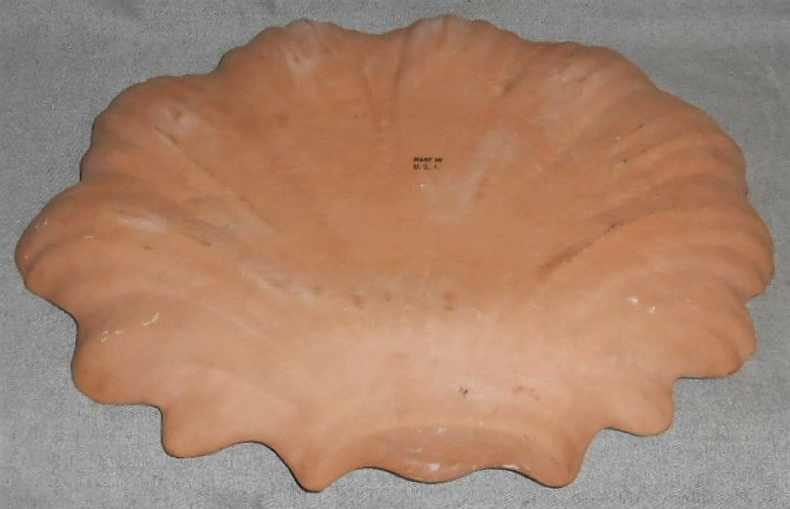This is a great Leaf Design Bowl that measures approx 15" across x 12 1/4" from top to bottom from Gladding McBean in their 1930s Catalina Line of Terra Cotta Specialties - Made in California. I is in good pre-owned condition with no chips or cracks.