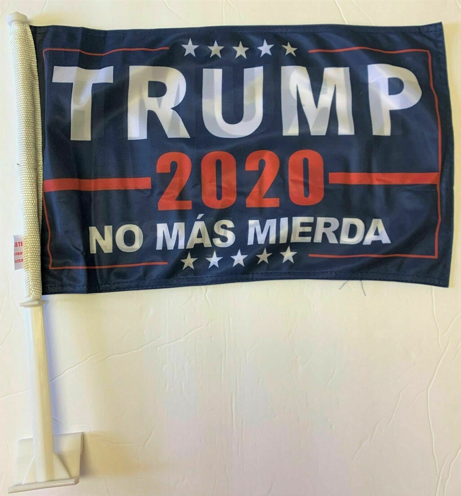 96 Trump 2020 No Mas Mierda NO MORE BULLSHIT USA LATINO CAR FLAG KNIT 12X18"