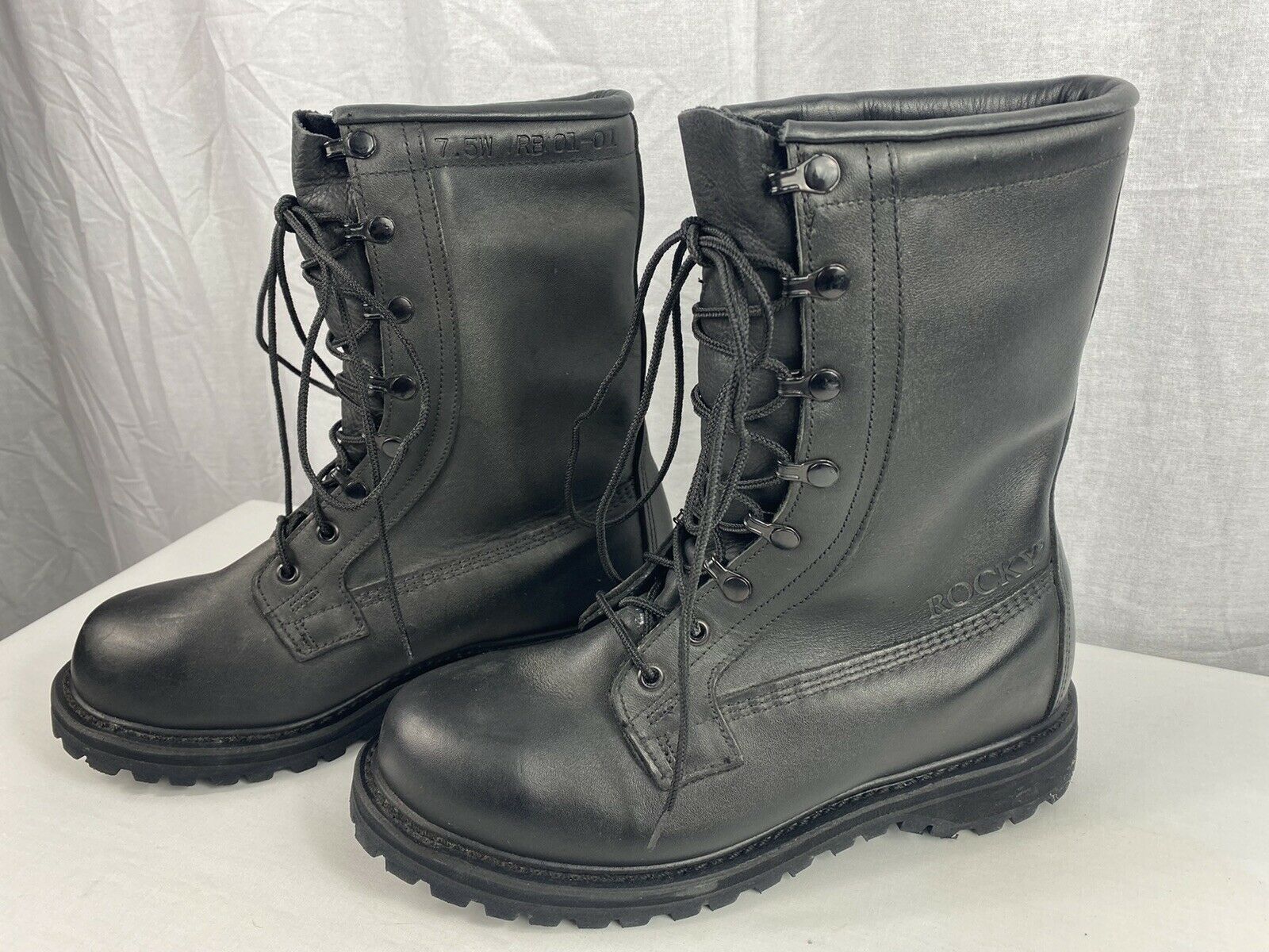 NEW ROCKY RB / 01-01 Black Leather Combat Military Boots - Sz. 7.5 Wide - NWOT