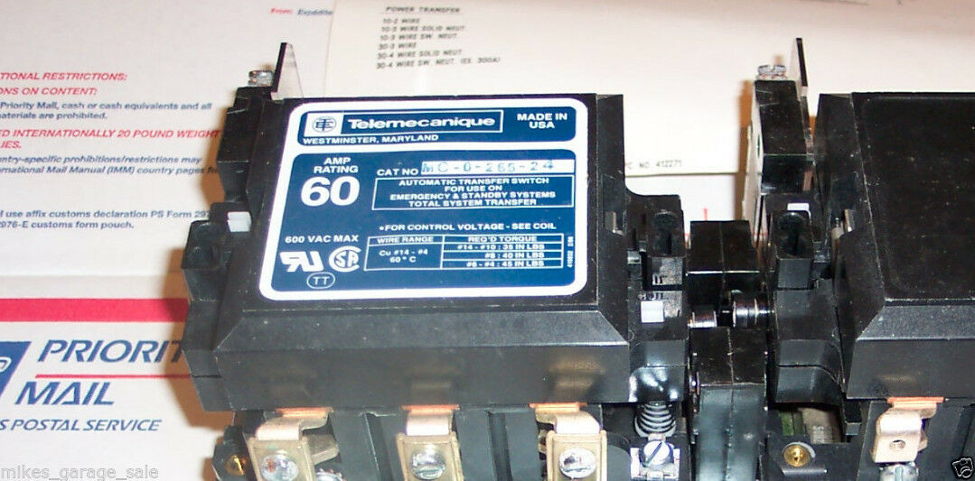 307-2284 TELEMECANIQUE MC-0-265-24 DUAL CONTACTOR TRANSFER SWITCH
