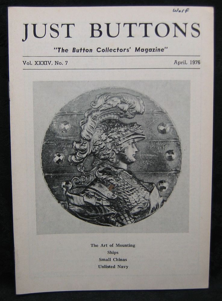 April - Unlisted Navy Button, Thoroughbreds of the Sea, "Little China Buttons", Art of Mounting Buttons and Hints on Cleaning