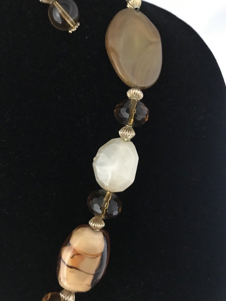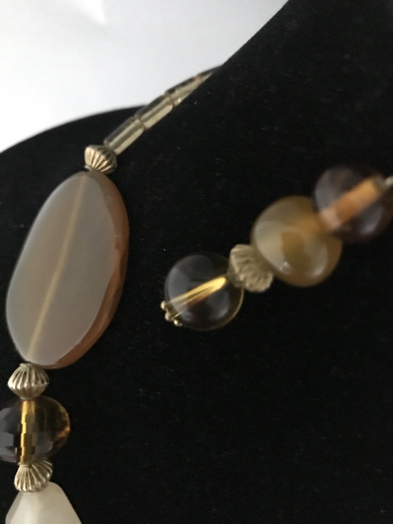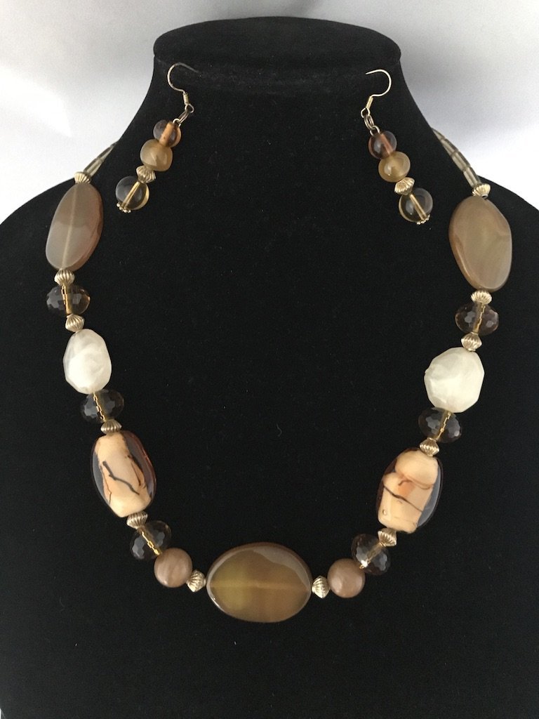 23.5in stone replica flat caramel colored necklace with matching 1.5in earrings